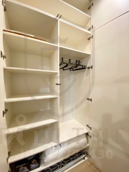 Много места для хранения вещей: этажерки, полки, огромный 3 метровый шкаф от пола до потолка!