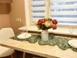 В квартире есть все для комфортного проживания, в спальне расположена двуспальная кровать, ж/к телевизор, подключен wi fi и спутниковое TV. В гостиной находится удобный диван на двоих человек, журнальный столик и шкаф. На кухне есть все необходимое для приготовления и хранения пищи, включая микроволновую печь, электрочайник, холодильник и посуду. Ванная комната в идеальном состоянии. Мы предоставляем шампунь, гель для душа, мыло и многое другое. Во всех наших квартирах есть фен.