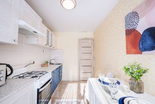 В квартире есть все для комфортного проживания, в спальне расположена двуспальная кровать, ж/к телевизор, подключен wi fi и спутниковое TV. В гостиной находится удобный диван на двоих человек, журнальный столик и шкаф. На кухне есть все необходимое для приготовления и хранения пищи, включая микроволновую печь, электрочайник, холодильник и посуду. Ванная комната в идеальном состоянии. Мы предоставляем шампунь, гель для душа, мыло и многое другое. Во всех наших квартирах есть фен.
