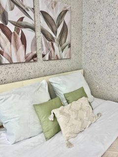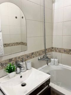 В квартире есть все для комфортного проживания, в спальне расположена двуспальная кровать, ж/к телевизор, подключен wi fi и спутниковое TV, диван на двоих человек, журнальный столик и шкаф. На кухне есть все необходимое для приготовления и хранения пищи, включая микроволновую печь, электрочайник, холодильник и посуду. Ванная комната в идеальном состоянии. Мы предоставляем шампунь, гель для душа, мыло и многое другое. Во всех наших квартирах есть фен.