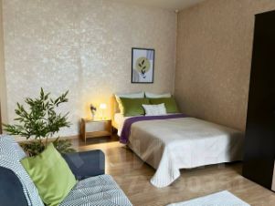 Квартира очень стильная и современная, в гостиной расположена двуспальная кровать, раскладной диван, ж/к телевизор, подключен wi fi и спутниковое телевидение. Кухня полностью оборудована всем необходимым для приготовления и хранения пищи. Ванная комната в идеальном состоянии. Квартира оснащена всем необходимым для комфортного проживания, включая: чай, сахар, шампунь, гель для душа, мыло и другие принадлежности. Предоставляются полные комплекты постельного белья и комплекты полотенец. Уважаемые гости, для Вашего удобства и безопасности все наши квартиры являются некурящими.