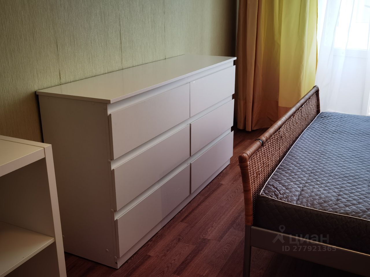 В комнате мебель ИКЕА: двуспальная кровать, гардероб, стеллаж, письменный и компьютерный столы, комод 6 ящиков.