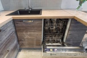 - плита, духовка, микроволновка, вытяжка, чайник, кофемашина, тостер, посудомоечная машина, холодильник;
