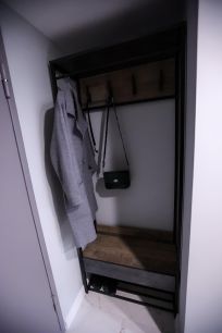 На 2-уровне расположена спальня: кровать с подъемным механизмом и ортопедическим матрасом 140х200, прикроватная тумба, комод, напольная вешалка для одежды.