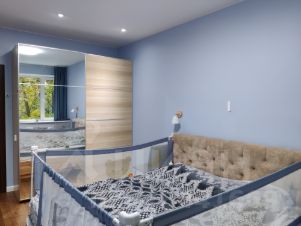- 2 изолированные спальни, 2 комнаты - проходные (план приложен). Получается огромная общая зона - для кино, игр детей, рабочей зоны.