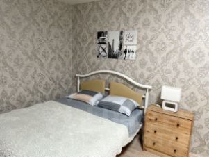 В квартире могут разместиться шесть человек, есть одна двухспальная кровать и два раскладных дивана с ортопедическим основанием.