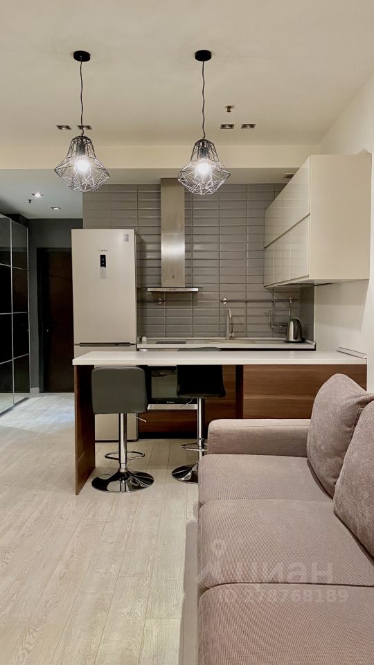 Хороший дизайн в приятных светлых тонах. Куплена хорошая мебель - два больших и вместительных шкафа купе, диван-кровать с ортопедическим матрасом и вместительный кухонный гарнитур. Установлена качественная техника - стиральная и посудомоечная машины, духовка, варочная поверхность, холодильник, кондиционер и телевизор. Апартамент полностью оборудован всем необходимым и готов к комфортному проживанию. Есть быстрый и стабильный интернет от "МГТС" - очень нужная вещь в условиях удалённой работы.