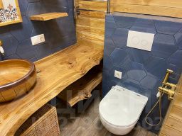 Два изолированных санузла с тропическим душем, большой гардеробный шкаф, изолированная прихожая. В отделке использовались только качественные, дорогие материалы. Вся бытовая техника, сантехника, мебель премиум-класса.
