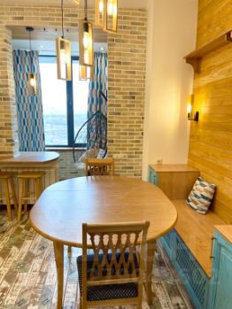 Светлая квартира с дизайнерским ремонтом и высокими потолками.