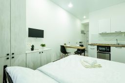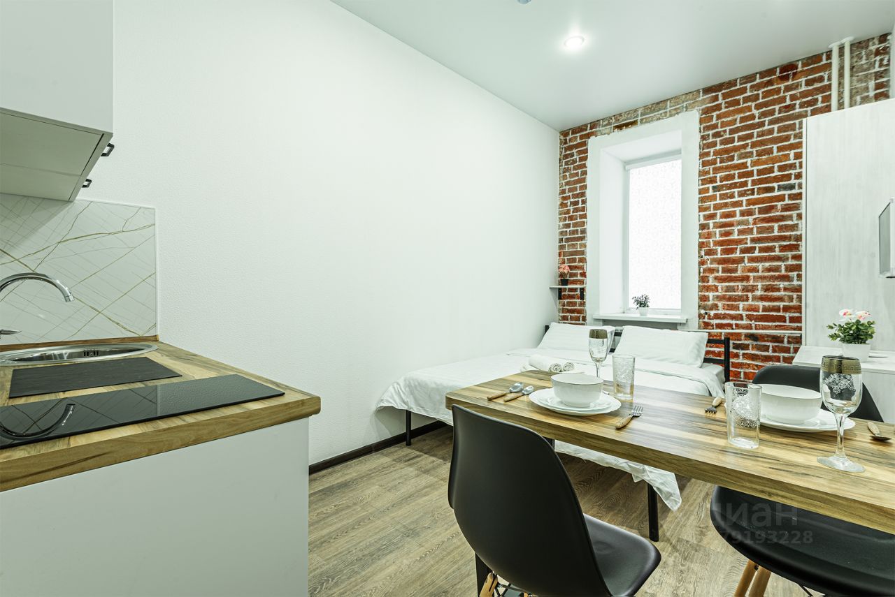 Эта светлая студия площадью 20 м² полностью меблирована и оснащена всем необходимым для комфортного проживания — от краткосрочной аренды на сутки до длительного проживания на неделю или месяц.