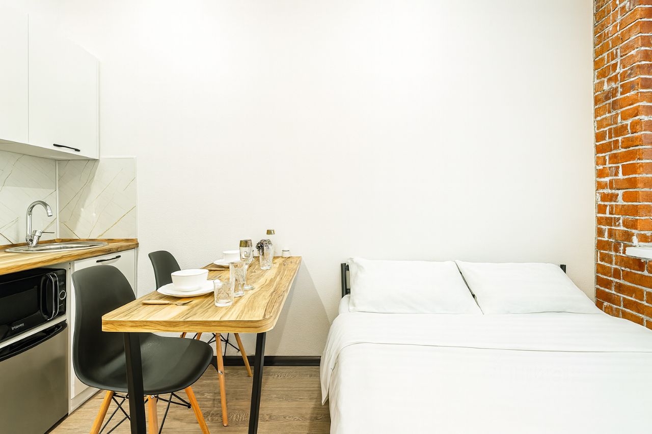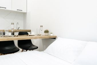 Эта светлая студия площадью 20 м² полностью меблирована и оснащена всем необходимым для комфортного проживания — от краткосрочной аренды на сутки до длительного проживания на неделю или месяц.