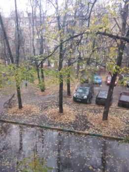 Вторая линия домов проспекта Будённого. Окна на тихий, зелёный двор. Стихийная парковка во дворе. Всегда можно найти места. Застекленный балкон со встроенными системами хранения.