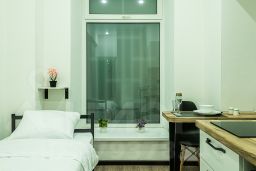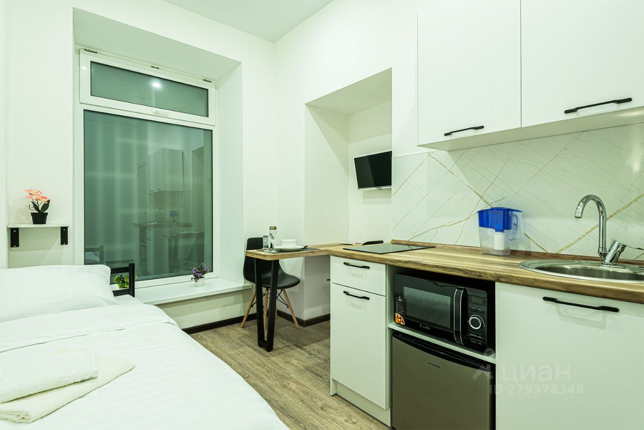 Эта светлая студия площадью 20 м² полностью меблирована и оснащена всем необходимым для комфортного проживания — от краткосрочной аренды на сутки до длительного проживания на неделю или месяц.