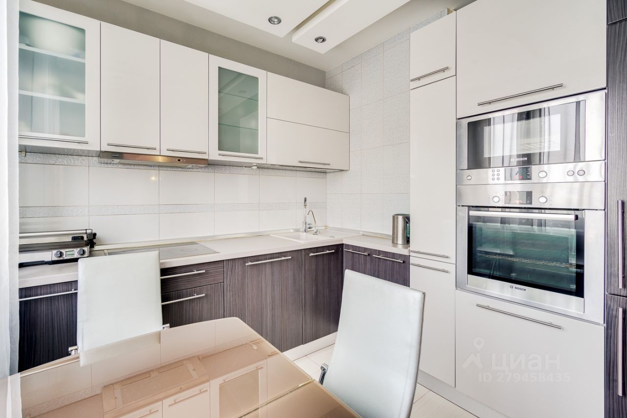 Кухня 7 кв.м., кухонный гарнитур оснащен всех необходимой бытовой техникой, встроенные холодильник Liebherr, духовой шкаф Bosch, микроволновая печь Bosch, посудомоечная машина Bosch.