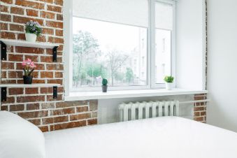 — Современный интерьер с кирпичной лофт-стеной создаёт стильную и атмосферную обстановку.