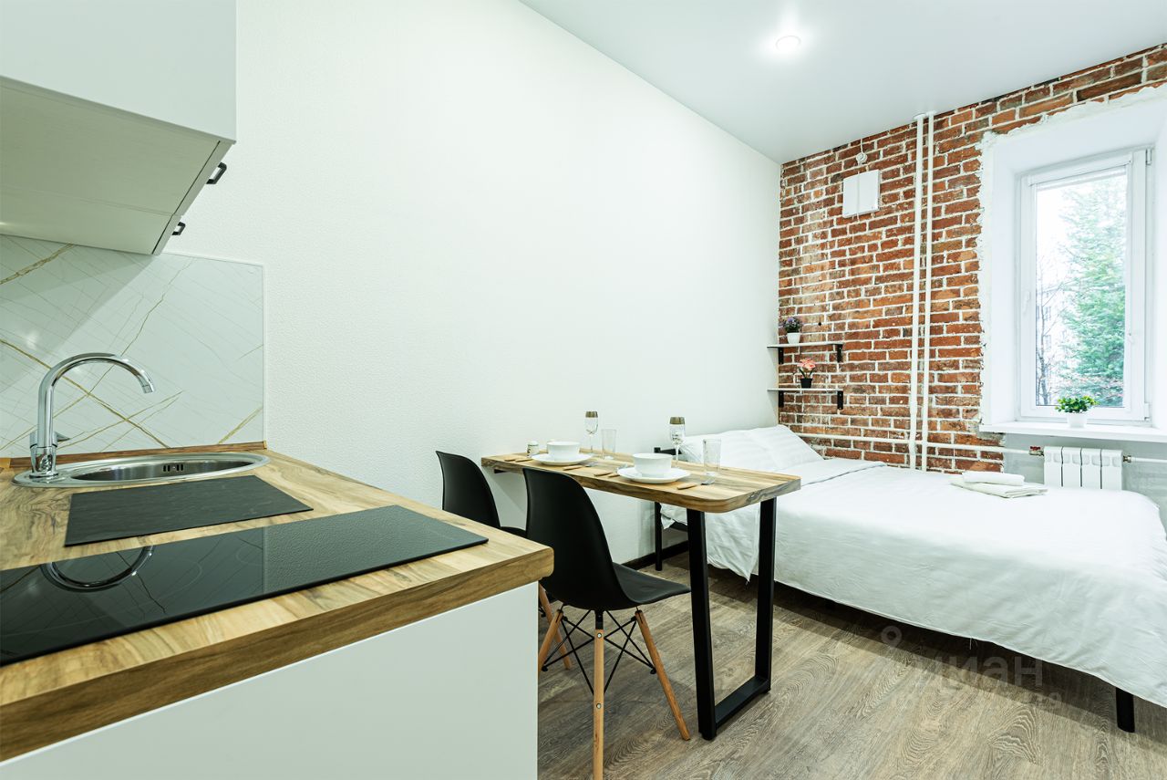 Эта светлая студия площадью 20 м² полностью меблирована и оснащена всем необходимым для комфортного проживания — от краткосрочной аренды на сутки до длительного проживания на неделю или месяц.