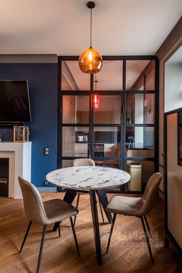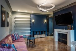 В гостиной: камин на биотопливе, большой ТВ с акустикой.