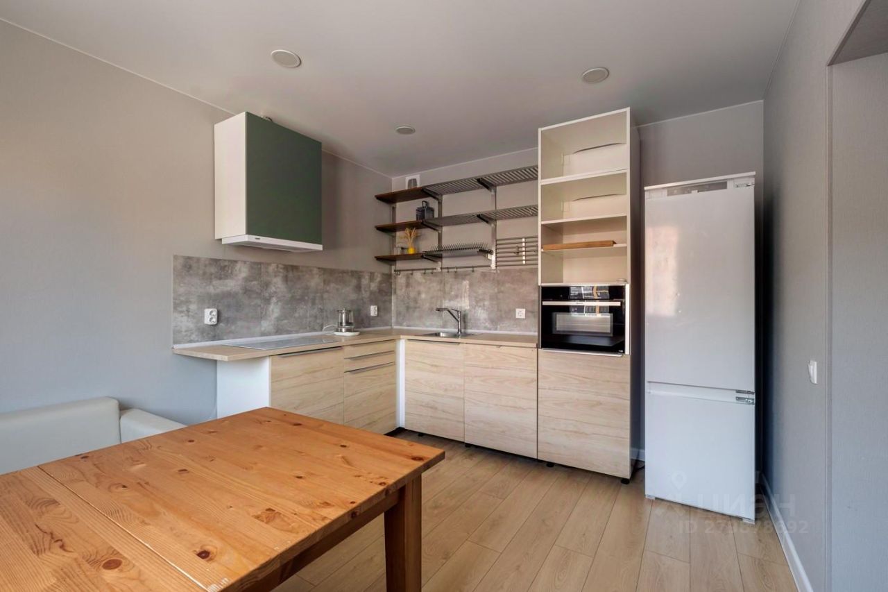 Кухня с большим обеденным столом и оборудованная необходимой техникой