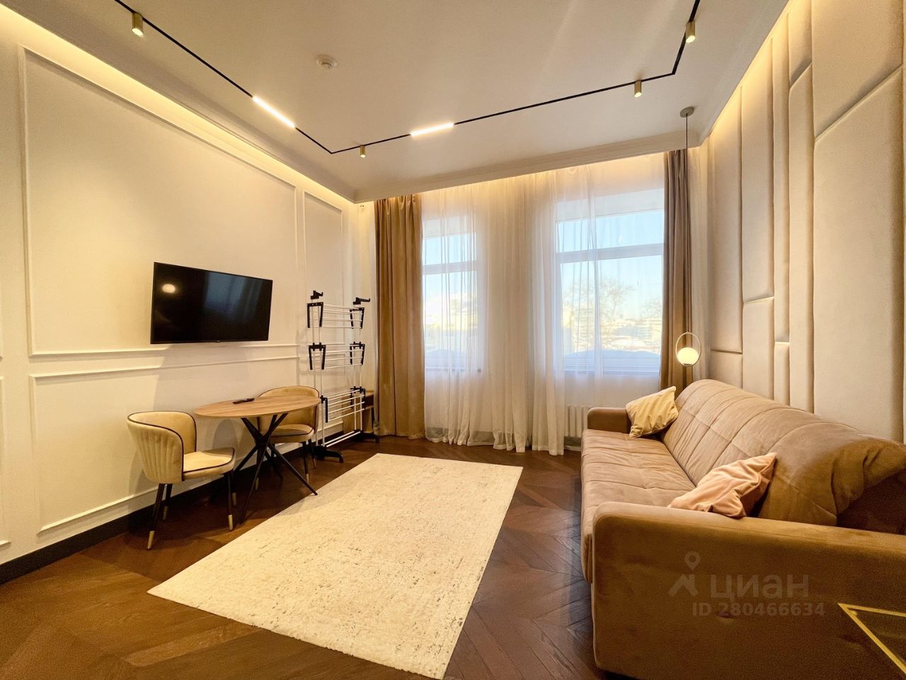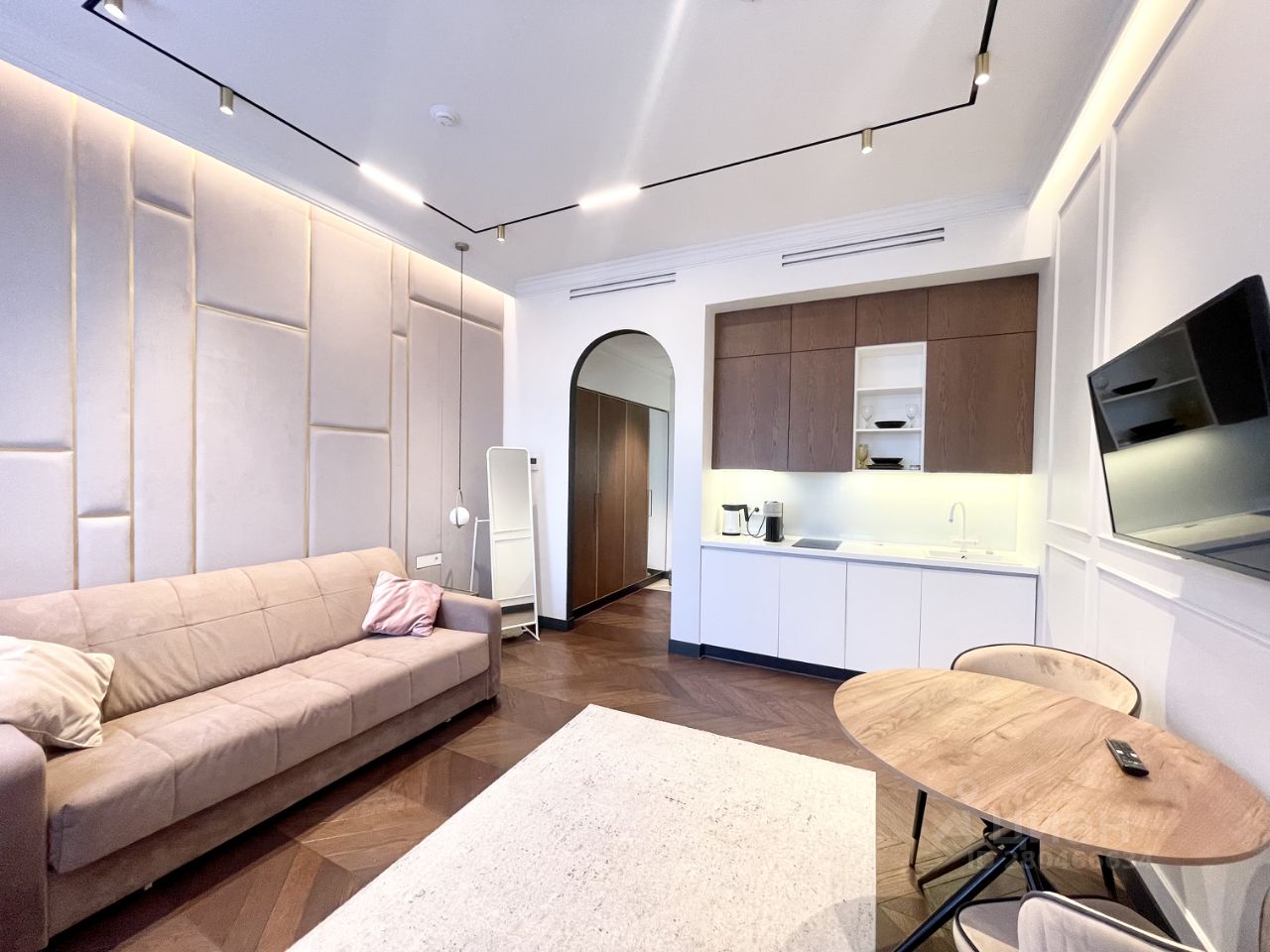 Премиальная отделка с использованием высококлассных материалов, имеется большой раскладной диван Аскона ,кухонный стол ,так же полное оснащение кухни бытовой техникой,есть телевизор, полностью оборудованный санузел , система климат контроля .