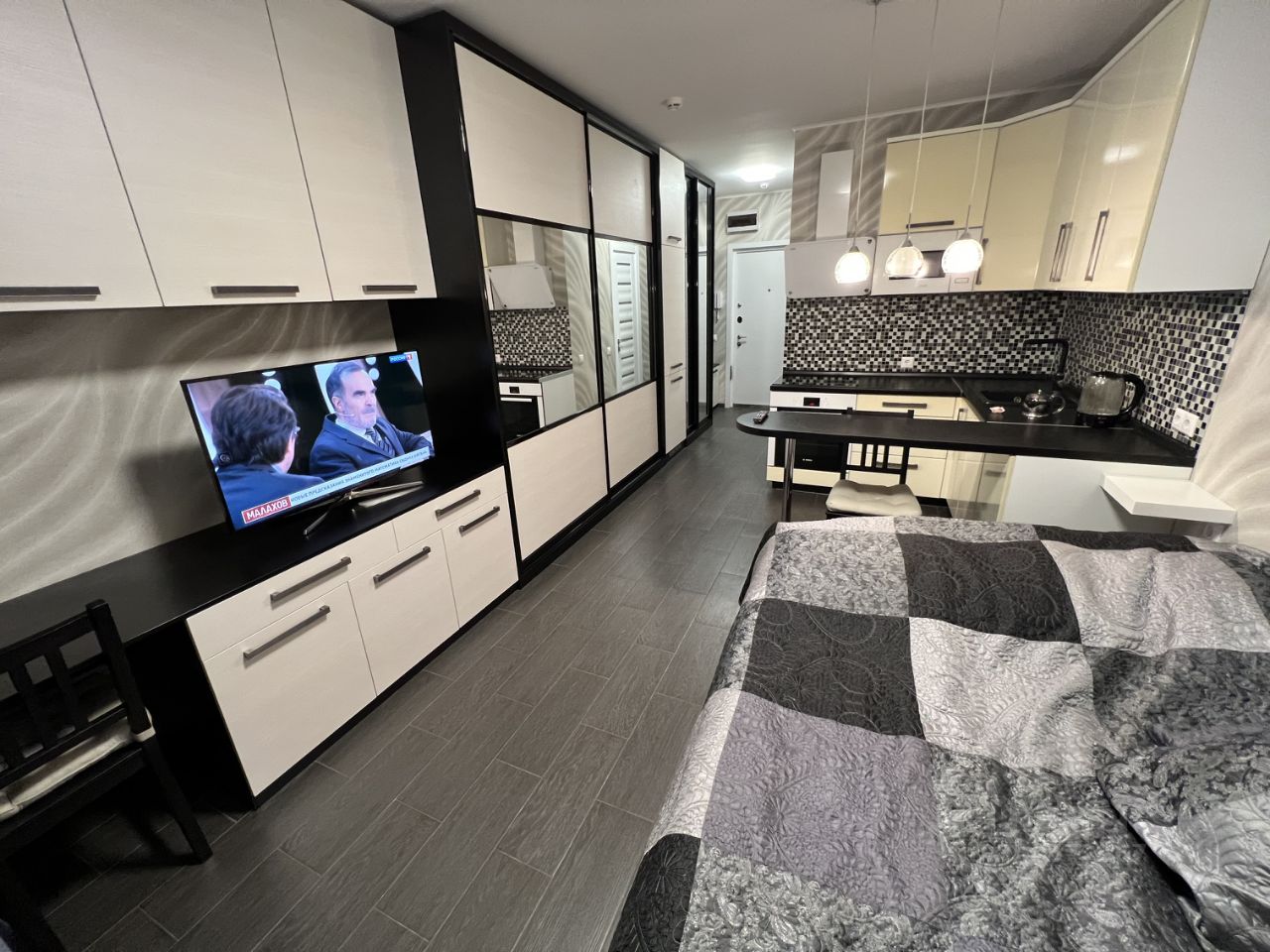 В квартире есть все для проживания. Хороший ремонт, много встраиваемой мебели с зеркальным фасадом, раскладной модульный двуспальный диван, рабочее место, вся необходимая кухонная техника, встроенный холодильник, стиральная машина Bosche, кондиционер, телевизор Samsung, фильтр для питьевой воды, утюг, пылесос б/п, гладильная доска, сушилка для белья, посуда, постельное белье, ..., домофон, Wi-Fi.
