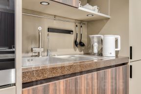 - в зоне кухни: кофемашина Nespresso, посудомоечная машина, духовой шкаф, электрочайник, вытяжка, посуда для приготовления и приема пищи, чай, кофе, сахар, соль;