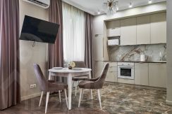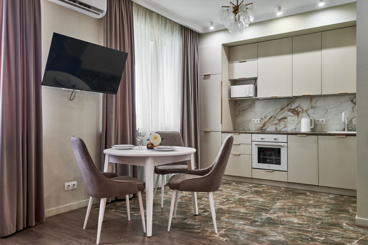 Оборудована всем необходимым для проживания: от комфортной спальной зоны с ТВ и Wi-Fi, ванной комнаты со стиральной машиной и собственной кухни с необходимой бытовой техникой до посуды, постельных принадлежностей и махровых полотенец и домашних тапочек.