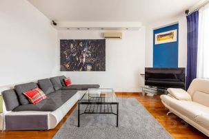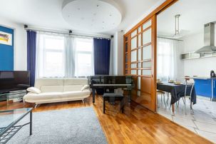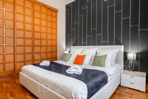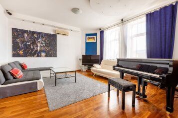 • Квартира, площадью 110кв.м включает в себя: просторную гостиную-42кв.м с роялем, удобную стильную и полностью оборудованную кухню, две спальни и две ванные комнаты (оснащённые джакузи и душевой кабиной). Здесь с комфортом смогут разместиться 5-6 гостей.