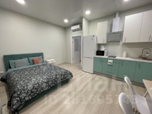 Просторная студия . Зона кухни со всей необходимой техникой.