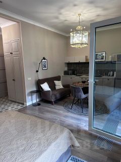 Квартира с дизайнерским ремонтом и панорамным остеклением общий площадью 38 метров.