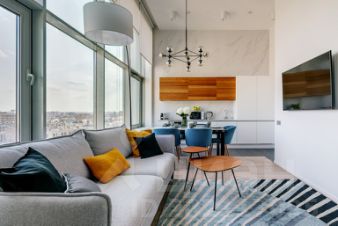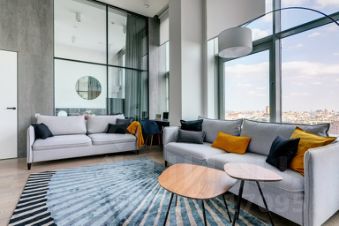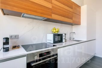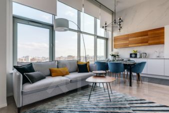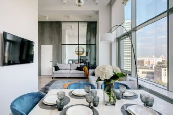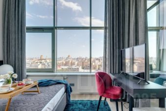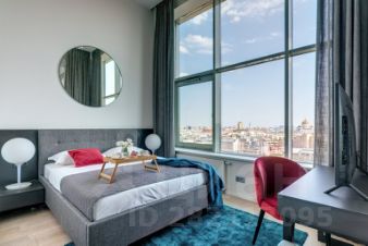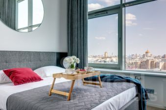 В доме есть собственный ресепшен с круглосуточным консьерж-сервисом, охрана, отдельный лифт к апартаментам. Это студийный апартамент с 1 спальней, высота потолков — 4 метра. Площадь апартаментов — 55 кв. м.