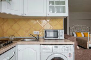 Превосходная 1-комнатная квартира-студия премиум-класса с современной мебелью и дизайнерским ремонтом на Крымском валу рядом с м.Октябрьская. Квартира комфортна для проживания 4 человек. В квартире: двуспальная кровать и двуспальный диван.
