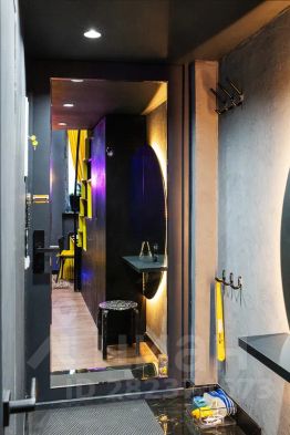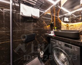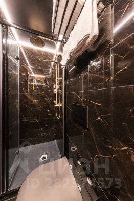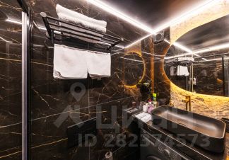 Аппартаменты с высокими потолками и уникальным дизайном. Стильная ванная комната с черным мрамором