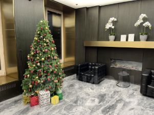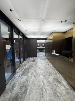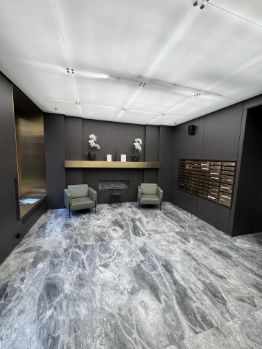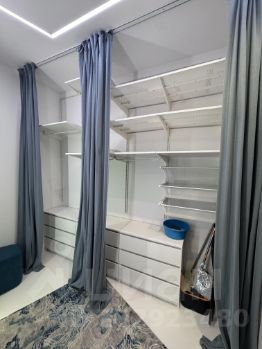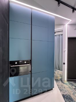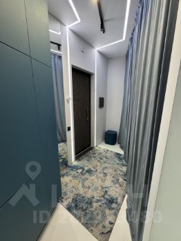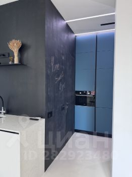 В квартире выполнен дизайнерский ремонт, монохромный в стиле минимализм. С акцентным цветом Персидский синий