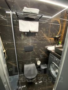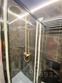 Ванная комната оборудована душевой кабиной, унитазом, раковиной, феном.