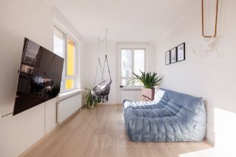 Эта солнечная квартира замотивирует на продуктивную работу днём, а вечером можно классно проводить закат и почилить в подвесном гамаке, глядя на вечерние огни Парка Победы. В квартире ощущается легкость и спокойствие, очень светлая энергетика! Отличные видовые характеристики на Москву-реку, где плавают лодочки, культурное достопримечательность и новые красивые комплексы вдалеке.