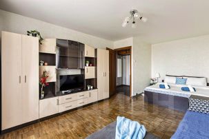 Квартира оборудована кондиционером, холодильником, плитой, микроволновкой, духовкой, чайником, стиральной машиной.