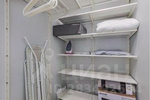 В комнате расположена большая двухспальная кровать, а также есть отдельная гардеробная с гладильной доской и утюгом.