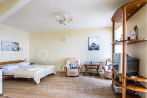 Уютная, комфортная студия в центре города, идеально подойдёт как для делового пребывания так и для романтического отдыха. Апартаменты оснащены всем необходимым для комфортного проживания: продуктами первой необходимости, постельным бельем, полотенцами, посудой, Wi-Fi. Имеется вся бытовая техника: стиральная машина, телевизор, холодильник, посудомоечная машина, микроволновая печь, гладильная доска, утюг, фен.