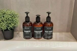 Просторная ванная с феном, бесплатными туалетными принадлежностями и стиральной машиной.