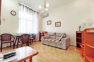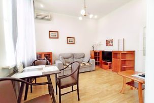 Посуточная аренда квартиры включает следующие удобства: Современная мебель, двуспальная кровать, бытовая техника, скоростной WI-FI, спутниковое TV, гладильная доска, сушка, оборудованная кухня, полный комплект посуды для приготовления и приёма еды, мыло, тапочки и фен
