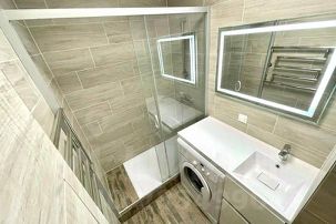 Для комфортного проживания есть всё необходимое: холодильник, стиральная машина, утюг с гладильной доской, чайник, посуда, кухонная плита, телевизор, ванные принадлежности, постельное бельё, средства личной гигиены.