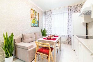 оборудованная кухня с варочной панелью, холодильником, микроволновкой и электрическим чайником;