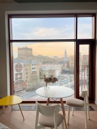 4. Их окон апартаментов верхних этажей и открытых террас откры- ваются панорамные виды на центр Москвы. Сочетание старинных зданий, сталинских высоток, парков и современных небоскре- бов на фоне природной красоты неба.