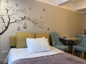 В квартире оборудована уютная гостиная-спальня, где можно провести время с комфортом и насладиться шикарным видом из окна на городской пейзаж. После насыщенного дня в столице наша квартира для вас станет оазисом тишины и уюта.