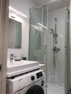 Санузел: Просторная душевая кабина со стеклянными створками, стиральная машина с защитой от протечек.