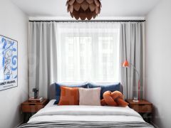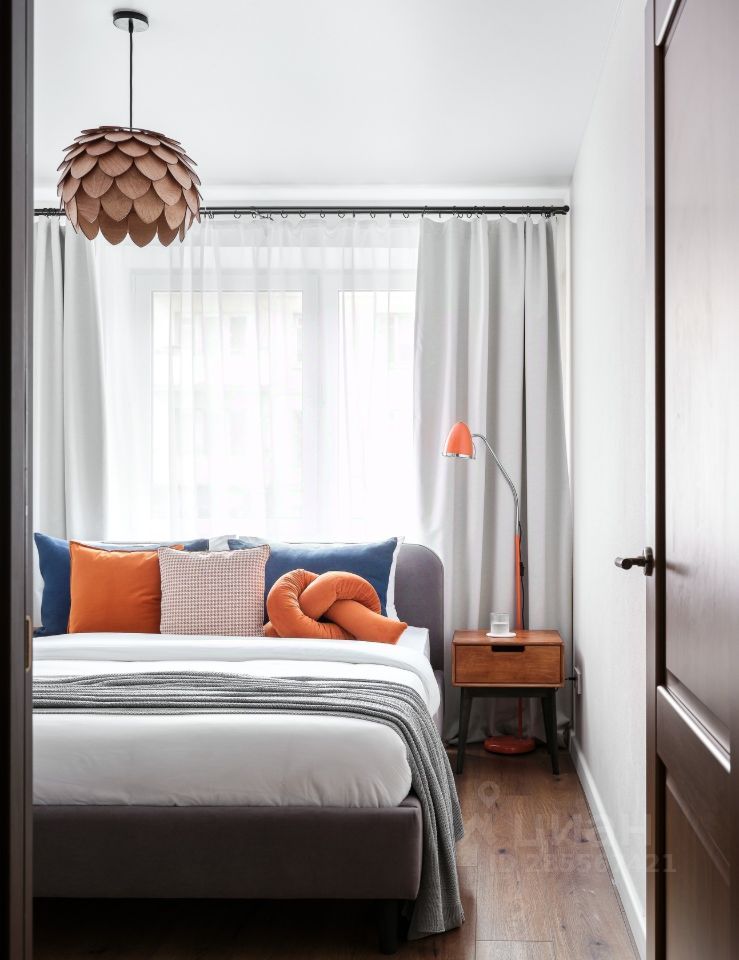 Спальня с окном на тихий двор, кровать, новый шкаф и уютный свет для вашего отдыха.