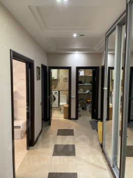Въезд под шлагбаум. Консьерж, видеонаблюдение, тамбурная дверь на 4 квартиры, сигнализация. Окна квартиры выходят во двор, поэтому квартира очень тихая и спокойная. Комнаты раздельные, два санузла, два застекленных балкона, большая прихожая, гардеробная комната.