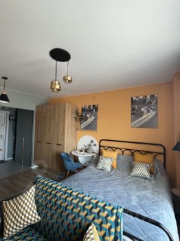 проживания: полностью оснащенная кухня включая: кондиционер, ПММ, СВЧ, духовка, полноценных встроенный холодильник, стир машинка, и тд. В отличие от множества предлагаемых студий, в этой имеется полноценная кровать с дорогим ортопедическим матрасом, Имется место для работы и отдыха. Все продумано до мелочей.