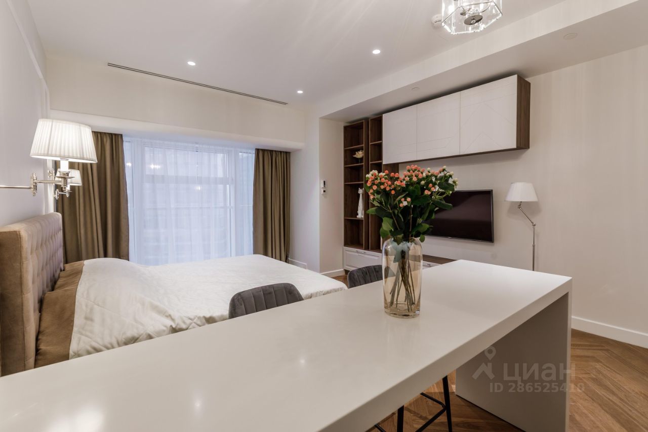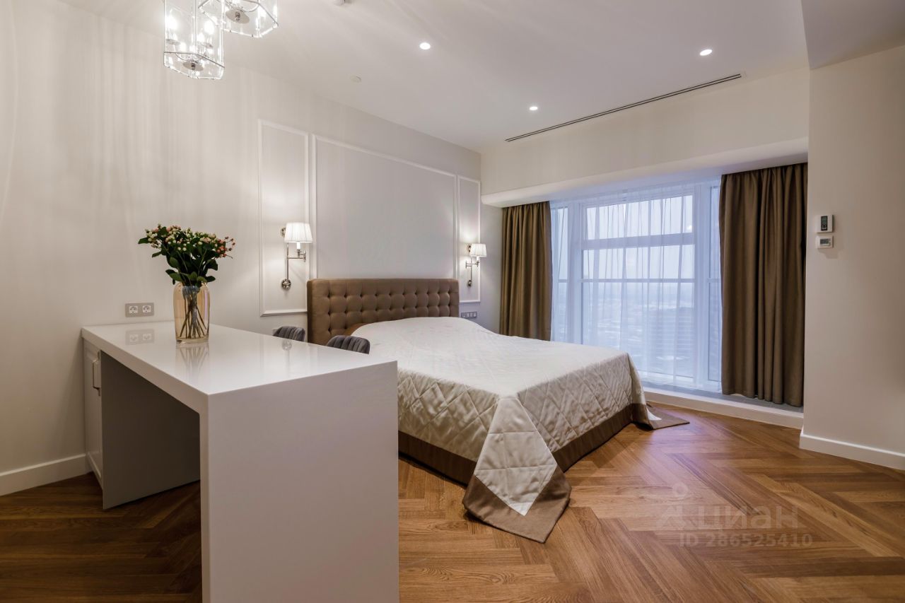 Апартаменты с современной отделкой в стиле неоклассика, панорамным остеклением, полностью укомплектованы мебелью и бытовой техникой.