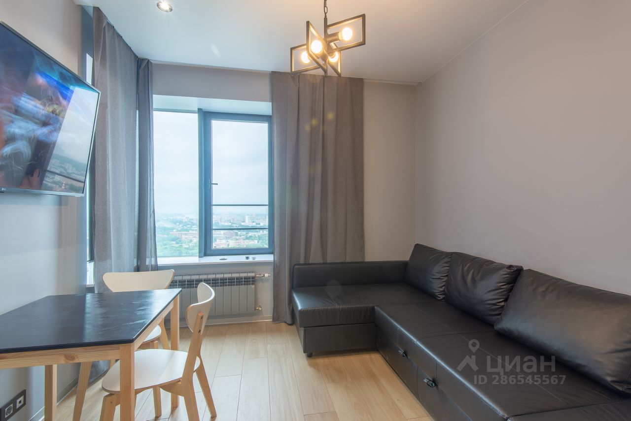 Без агентской комиссии. Сдается маленькая студия на высоте 100м, обставленная новой мебелью и укомплектованная всей необходимой качественной техникой: телевизор Smart TV 55", кондиционер, микроволновая печь, духовой шкаф, индукционная варочная панель, стиральная машина, холодильник. Большие панорамные окна позволят любоваться прекрасным видом на город. Дизайнерский ремонт, подоконник из камня, немецкая сантехника, подогревы полов, оптический интернет, домофон прямо в смартфоне. Студия находится в новом жилом комплексе "Маяковский" в 7 минутах ходьбы от метро Водный стадион. В шаговой доступности, два парка, Головинские пруды. В цокольном этаже здания находится спортивный зал с бассейном 25м, кафе, салон красоты, магазин Пятерочка. В здании живут дружные и успешные соседи, производится ежедневная уборка и дежурит консьерж. Аренда на длительный срок; залог 100%. Без животных. Вода и электричество по счетчикам оплачиваются отдельно, интернет бесплатно. При необходимости дополнительно можно арендовать машиноместо и кладовку.